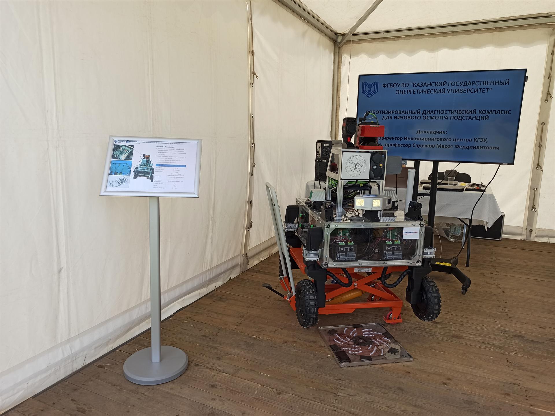 Казанский государственный энергетический университет презентовал проект "Роботизированный диагностический комплекс для низового осмотра подстанций". В состав делегации вошли директор Инженерного центра, заведующий кафедрой ТОЭ Марат Садыков, начальник управления научно-исследовательских работ Марат Низамиев, доцент кафедры ЭТКС Авер Аухадеев, доцент кафедры ТОЭ Михаил Горячев.