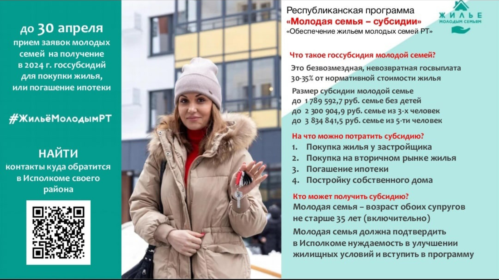 Подробнее узнать о программе «Обеспечение жильем молодых семей» можно на сайте Тюлячинского муниципального района, а так же на сайте Министерства по делам молодёжи РТ.
