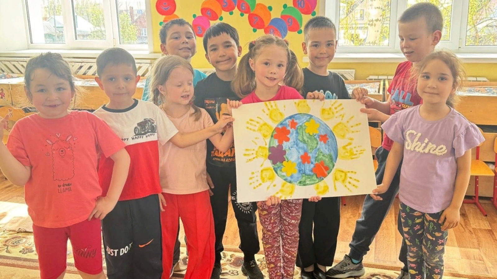 Этот день помог ребятам открыть новые знания, понять, что Земля – не только наш дом, но и для всех животных, растений тоже является домом. И мы должны беречь ее, сохранять ее богатства и не обижать всех ее обитателей. В честь дня Земли ребята выполнили коллективную аппликацию «Наша цветущая планета».