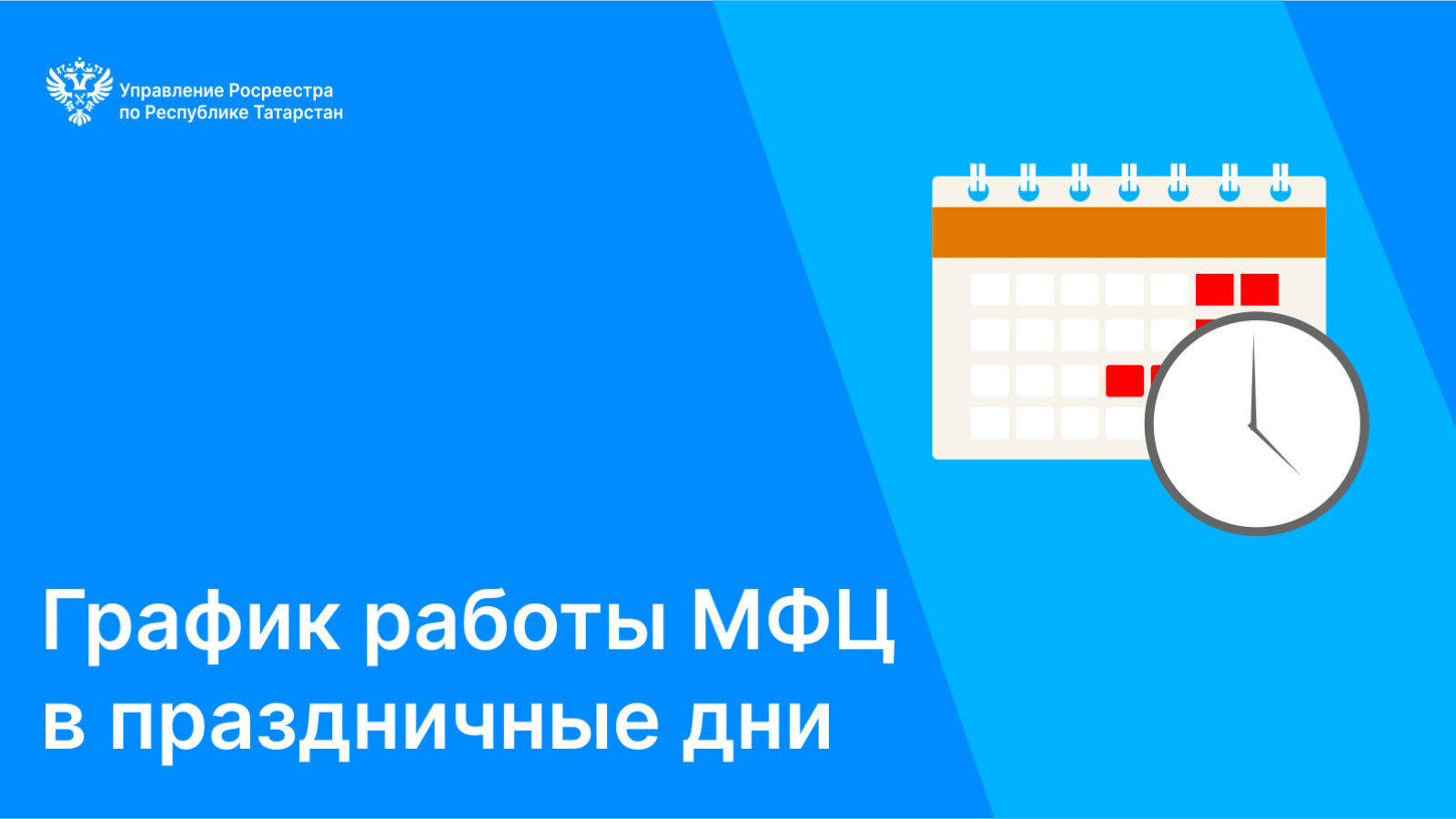 Управление Росреестра по Республике Татарстан обращает внимание, что в связи с предстоящими праздниками – «Днем защитника Отечества» и «8 марта» - изменен график работы МФЦ.