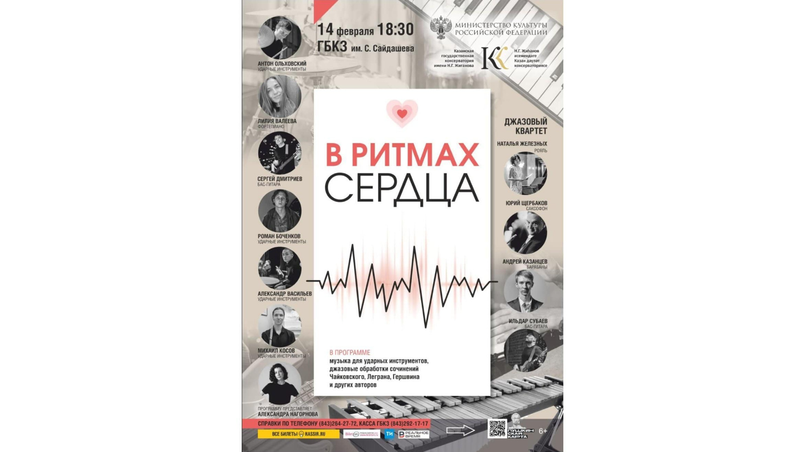 Казанская консерватория приглашает слушателей на концерт «В ритмах сердца»! 14 февраля в ГБКЗ им.С.Сайдашева зазвучит оригинальная музыка для ударных инструментов, джазовые обработки сочинений Чайковского, Леграна, Гершвина и других композиторов.