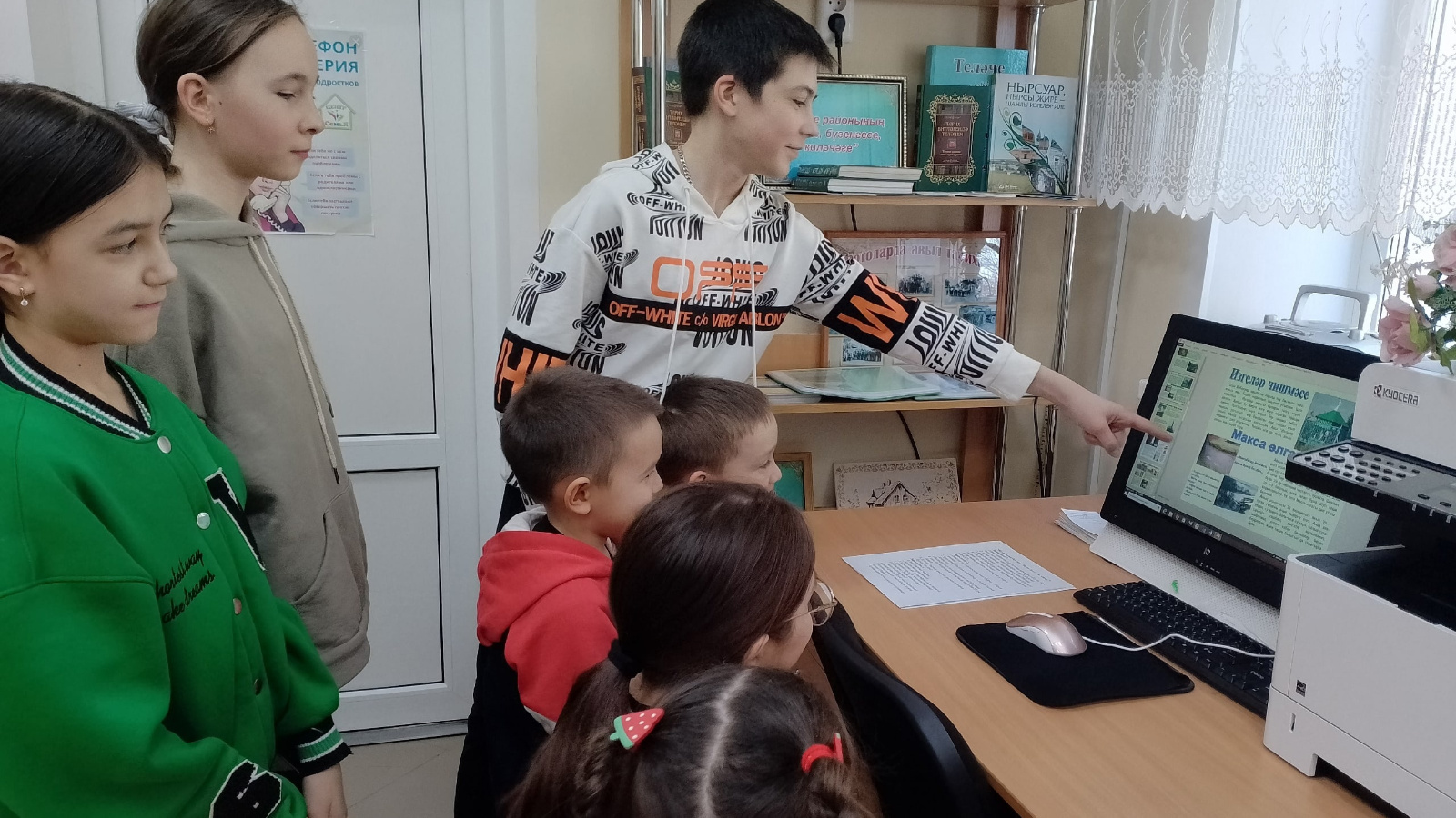 В Казакларской сельской библиотеке в рамках объединения “Хыялый балачак” прошел познавательный час «Туган ягым атамалары». Дети ознакомились с презентацией “Тарих! Дөньяда иң бөек нәрсә син! Син тузмыйсың, байыйсың гына!”. Ознакомились с историей родников, лугов, рек, а также был проведён обзор альбомов, отражающих историю села.