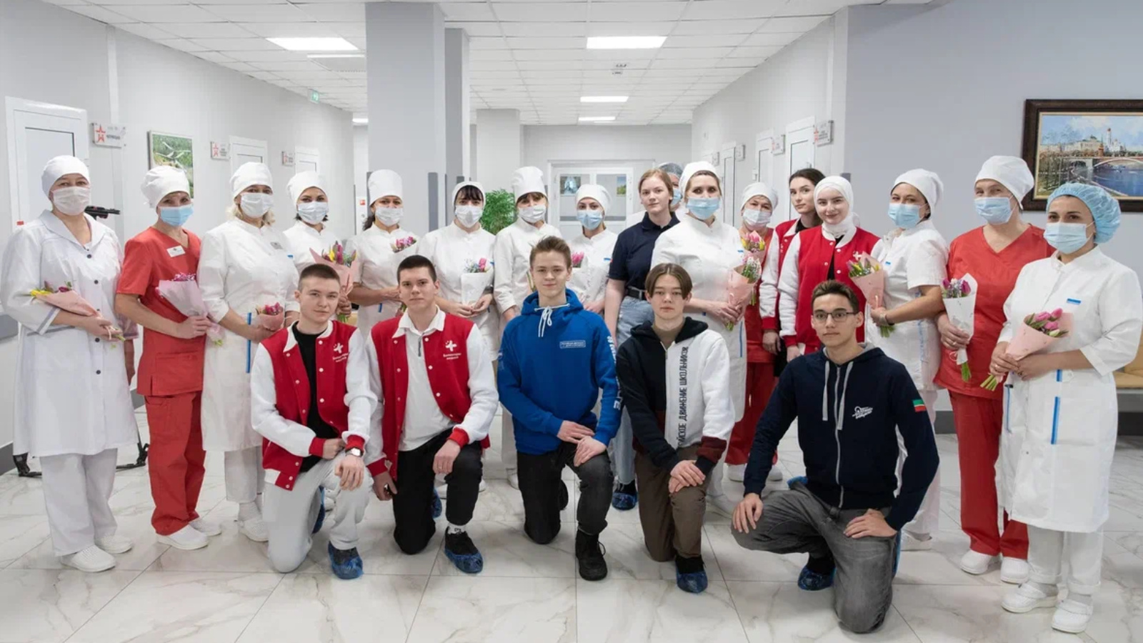 Сегодня, 8 марта, молодежь Татарстана поздравила медицинских работников военного госпиталя города Казани с праздником. Сейчас в госпитале проходят лечение участники специальной военной операции, получившие боевые ранения. К поздравлениям присоединились активисты Информационно-ресурсного центра добровольчества Республики Татарстана», Российское движение детей и молодежи «Движение первых» и волонтеры-медики при поддержке Минмолодежи Татарстана.