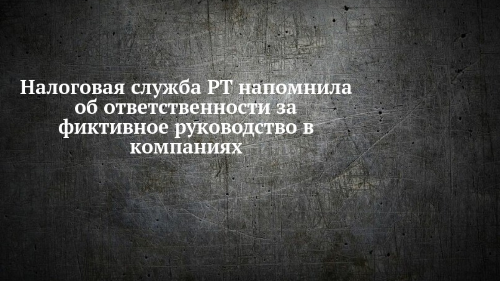 Налоговая служба РТ напомнила об ответственности за фиктивное руководство в компаниях