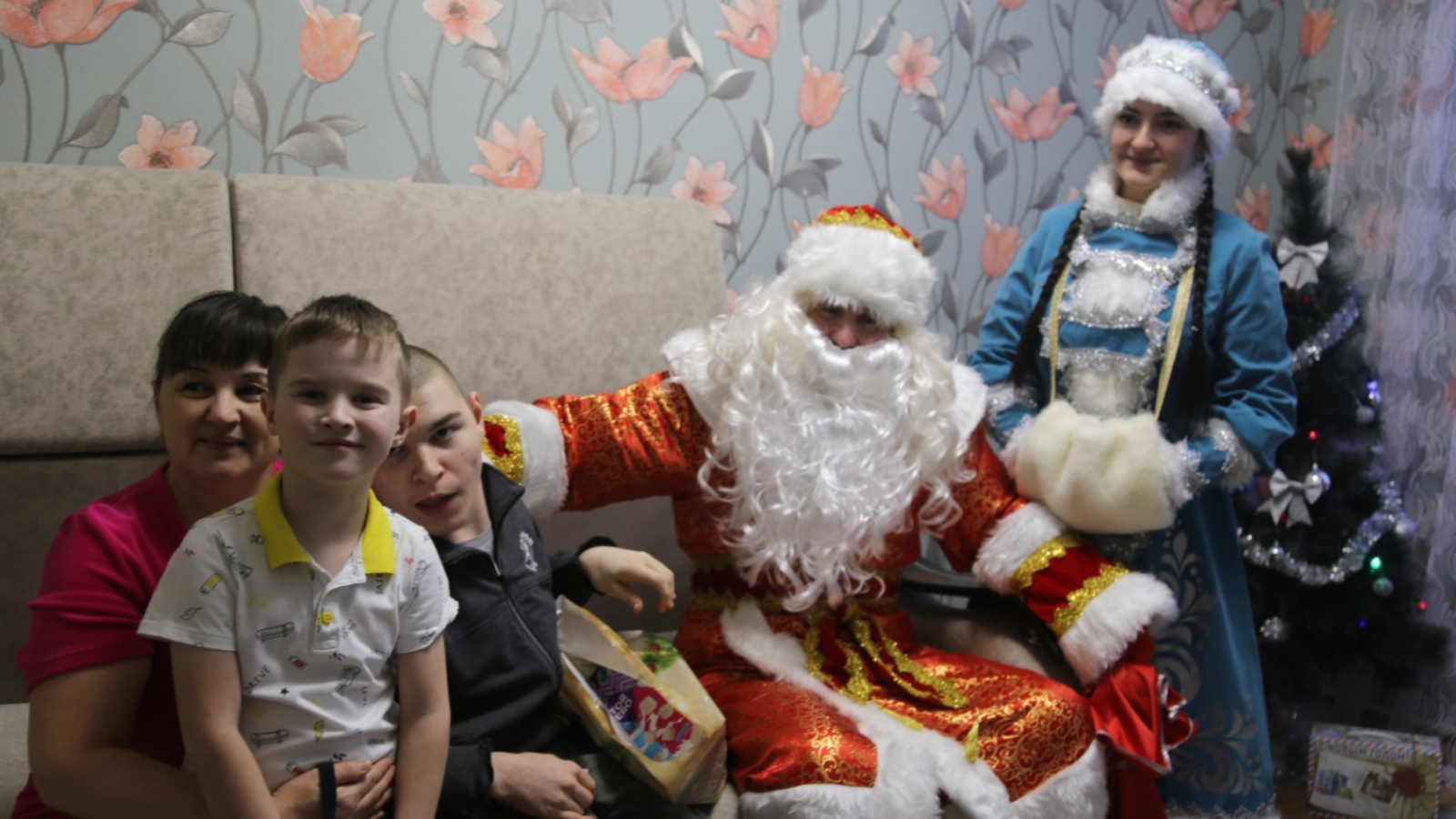 Новый год на дом доставили сегодня особенному подростку и двум его братьям волонтеры МЦ «Мизгел» и плавательного бассейна «Тамчы». А все дело в том, что самый младший из братьев очень верит в Деда Мороза! Он то и отправил письмо Дедушке Морозу с просьбой поздравить своего старшего брата и пожелал для него выздоровления. Алмаз хоть и болен с самого раннего детства очень жизнерадостный и активный мальчик, любит когда к ним приходят гости и очень эмоционально их встречает и провожает. Младшие ребятки смогли рассказать стихи и спели песенки около елочки для Деда Мороза и Снегурочки и все получили новогодние подарки. Мама уверена, эту встречу с новогодним волшебством ее сыновья запомнят надолго. А еще волонтеры дарят детям надежду на выздоровление. Ведь действительно, под Новый год иногда случаются чудеса!