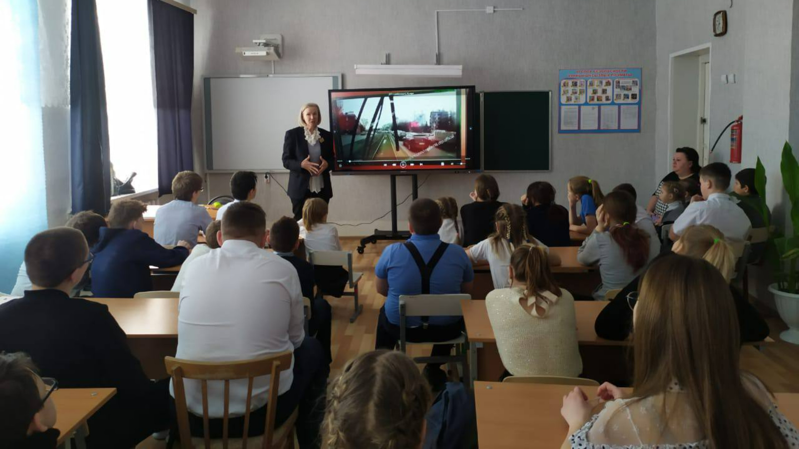 Пересечение проезжей части, виды пешеходных переходов, правила передвижения по обочине и краю проезжей части, дорожные ловушки и слепая зона, применение световозвращающих элементов подробно разъяснила начальник отдела профилактики ТУ ГБУ БДД в г. Нурлат Гульфия Гималтдинова. Также она отметила, что состояние улично-дорожной сети около образовательного учреждения соответствует нормативным требованиям. Наличие всех дорожных знаков, освещения, разметок и светофора позволяют выстроить безопасный маршрут детей дом-школа-дом.