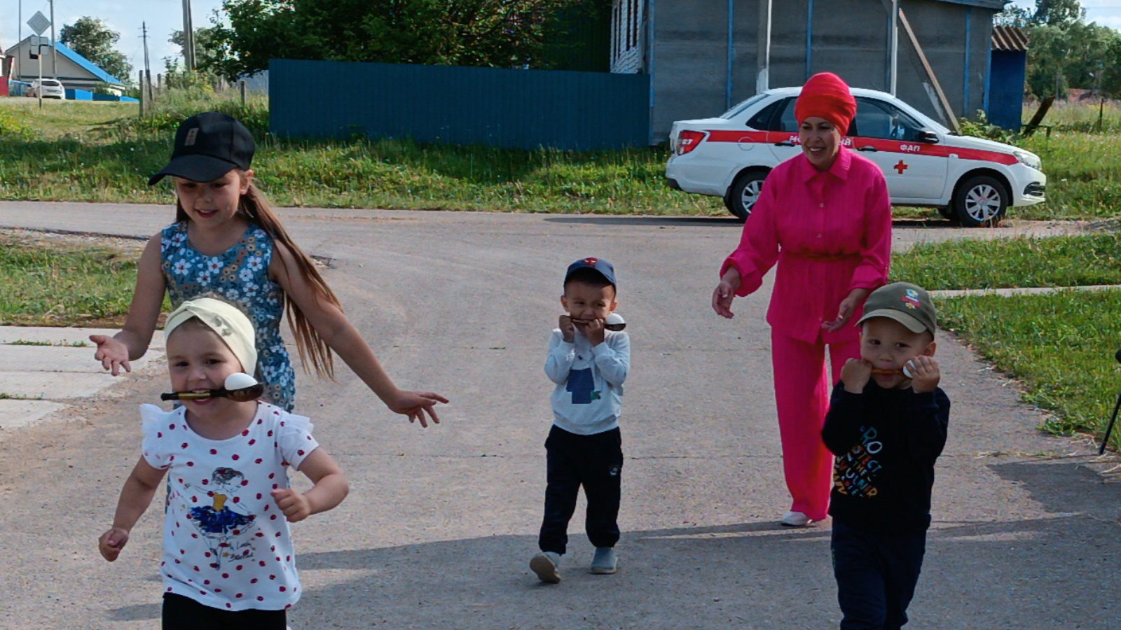 Заведующая поздравила ребят с праздником и началом летних каникул. Дети с большим удовольствием играли, участвовали во всех конкурсах. Праздничная программа включила в себя как развлекательные игры, так и татарские национальные игры, как "Колечко", "Тюбетей", "Залида".