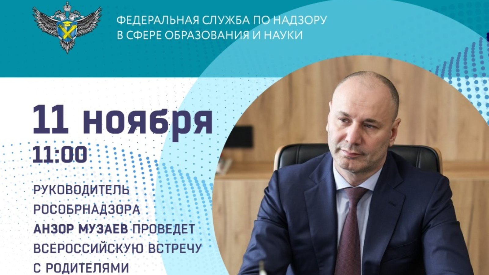 11 ноября в 11:00 руководитель Федеральной службы по надзору в сфере образования и науки Анзор Музаев проведет традиционную ежегодную Всероссийскую встречу с родителями.