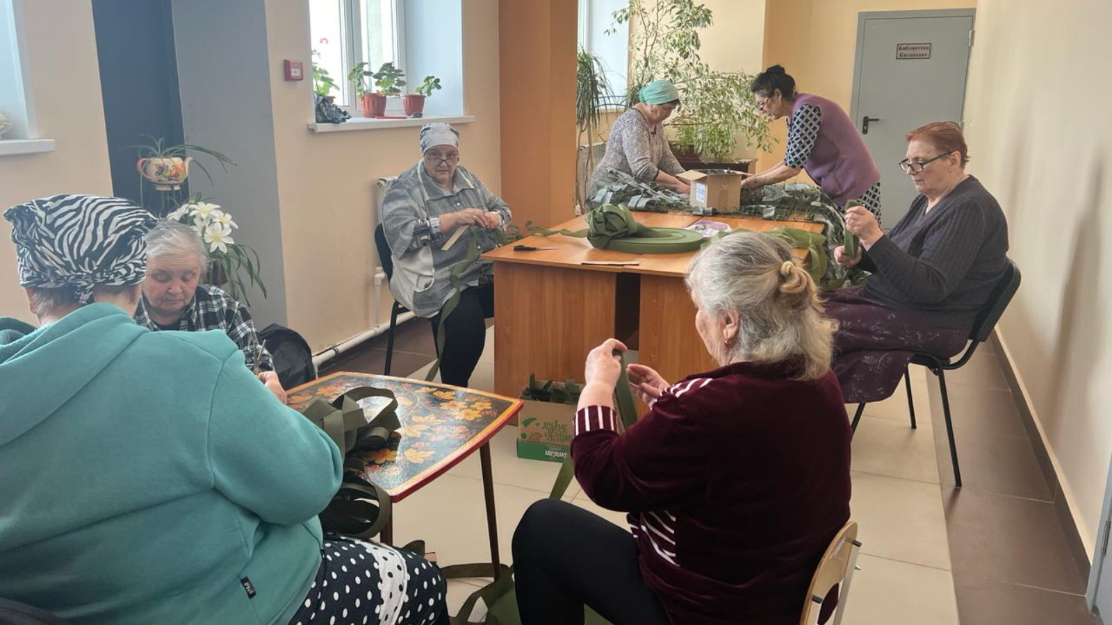 Сегодня бабушки, мамы защитников готовят маскировочные сети. Работают молча, сосредоточенно. Каждый думает о родных людях, которым сегодня во сто крат тяжелее, чем нам, в глубоком тылу. И если кто-то ещё не осознает это, думая, что отсидится тихо, или "свалит" за границу - не получится. Сегодня важно быть всем вместе. А вам, дорогие пенсионеры, спасибо и низкий поклон!