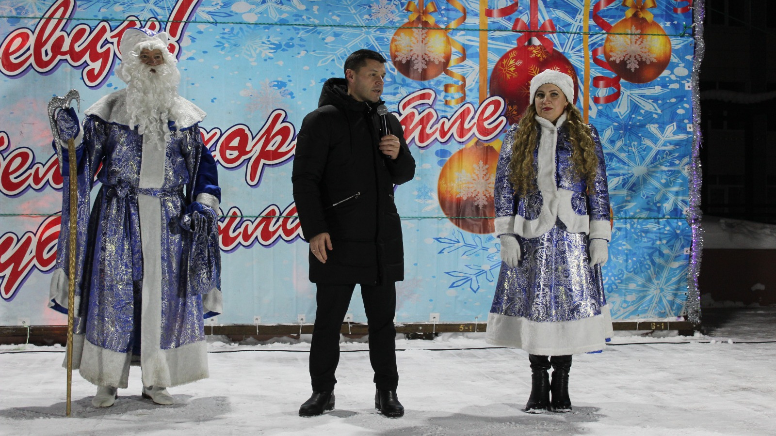 Жители района собрались на центральной площади, чтобы вместе зарядиться праздничным настроением. Водили хороводы, танцевали и пели среди сказочных персонажей. На празднике состоялся парад Дедов Морозов и их внучек Снегурочек.
