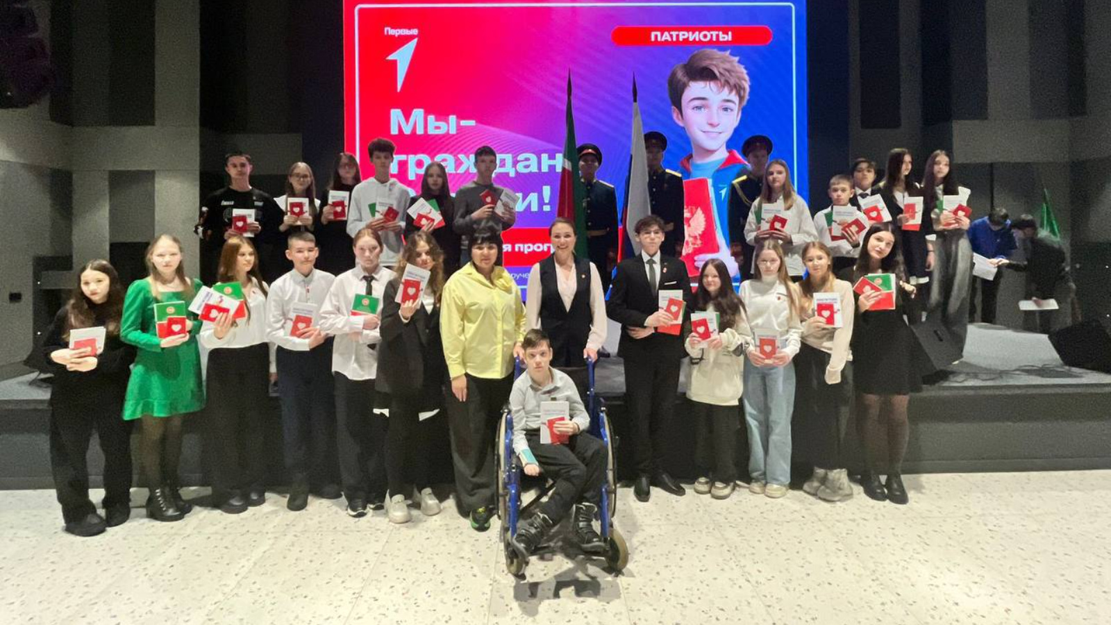 Вместе с паспортами ребята получили Конституцию РФ, обложку и значок Движения Первых.