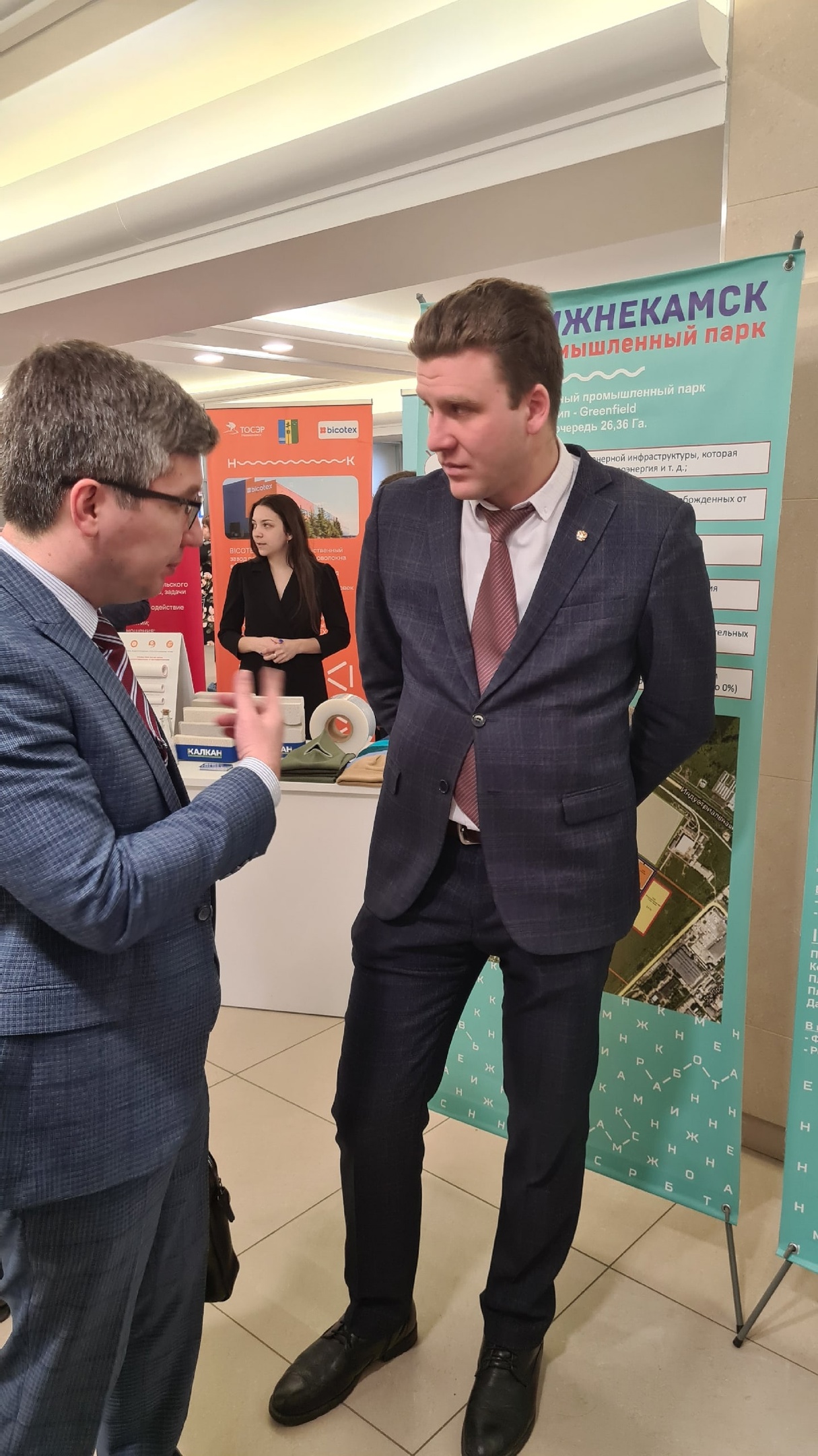 Делегация в составе главы Нижнекамского муниципального района Муллина Рамиля, генерального директора ПАО «Нижнекамскнефтехим» Климова Игоря и заместителя премьер-министра Республики Татарстан, министра экономики РТ Мидхата Шагиахметова уделила большое внимание выставочной зоне НХТИ.