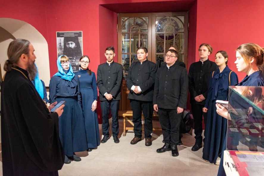 Экскурсию для воспитанников духовной школы провёл директор музея иеромонах Аркадий (Логинов).