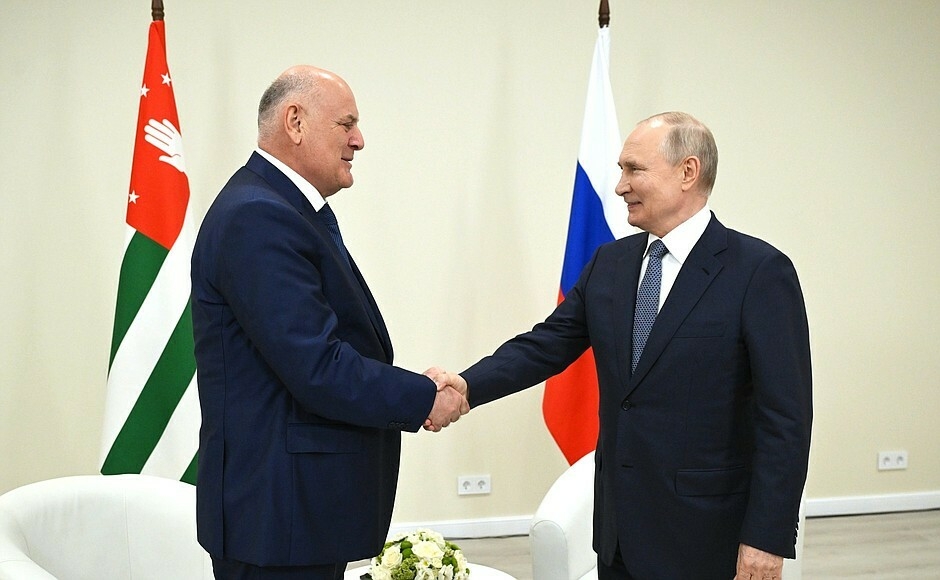 Президент России Владимир Путин провел встречу с коллегой из Абхазии Асланом Бжанией .