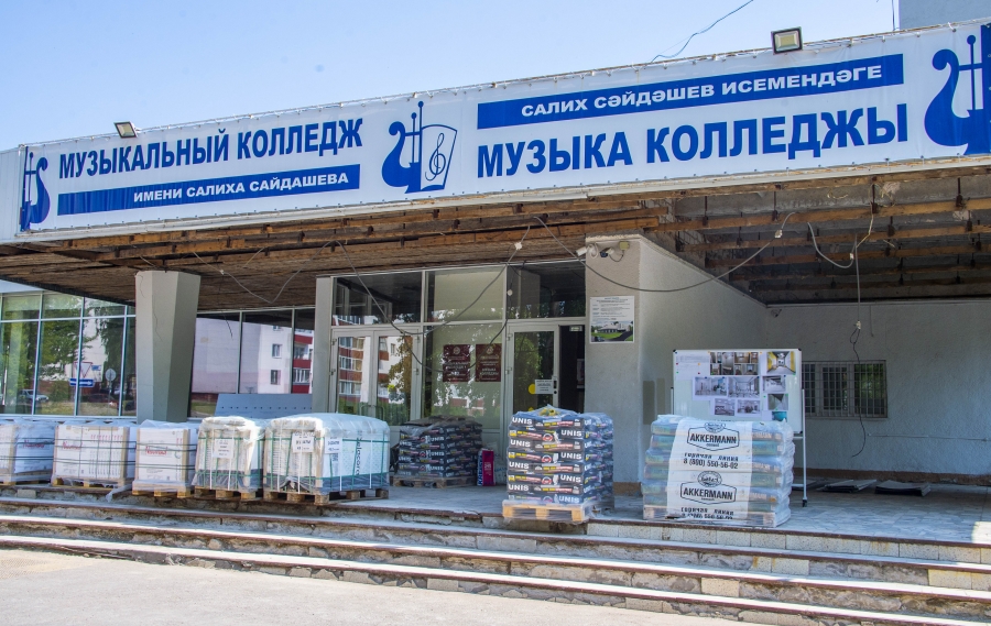 Следующим рабочая группа посетила музыкальный колледж имени Салиха Сайдашева. Благодаря поддержке Раиса РТ Рустама Минниханова на капитальный ремонт здания выделено более 130 млн рублей. На эти средства здесь запланированы демонтажные, отделочные работы, замена окон, дверей и инженерных сетей. Сейчас рабочие заливают и выравнивают полы, штукатурят стены, прокладывают инженерные коммуникации. Ремонтные работы ведутся и в детской музыкальной школе №1, расположенной на четвертом этаже этого здания.