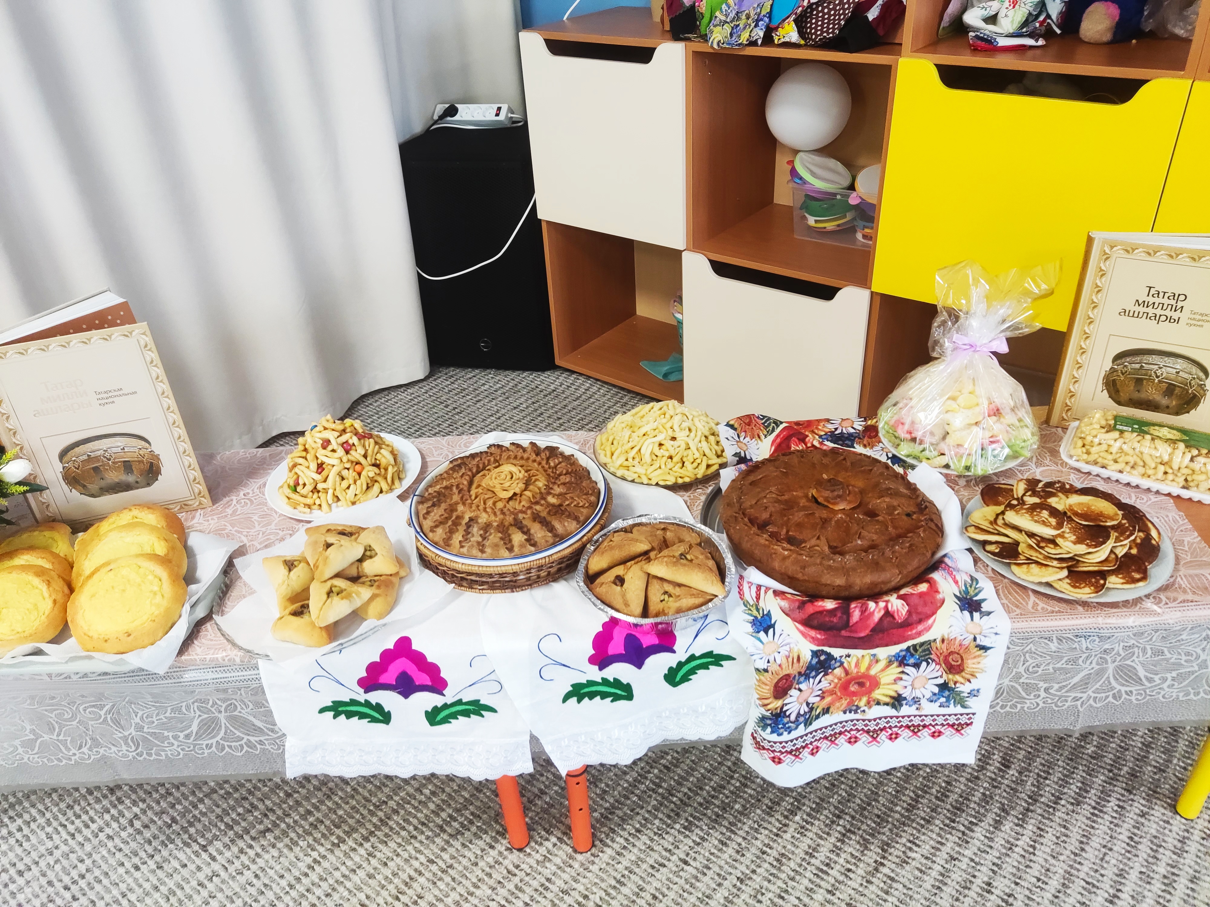 Также все показали видеоролики, где ребята с мамами готовят кыстыбый, өчпочмак, бәлеш, губадию, чак-чак, кош теле.