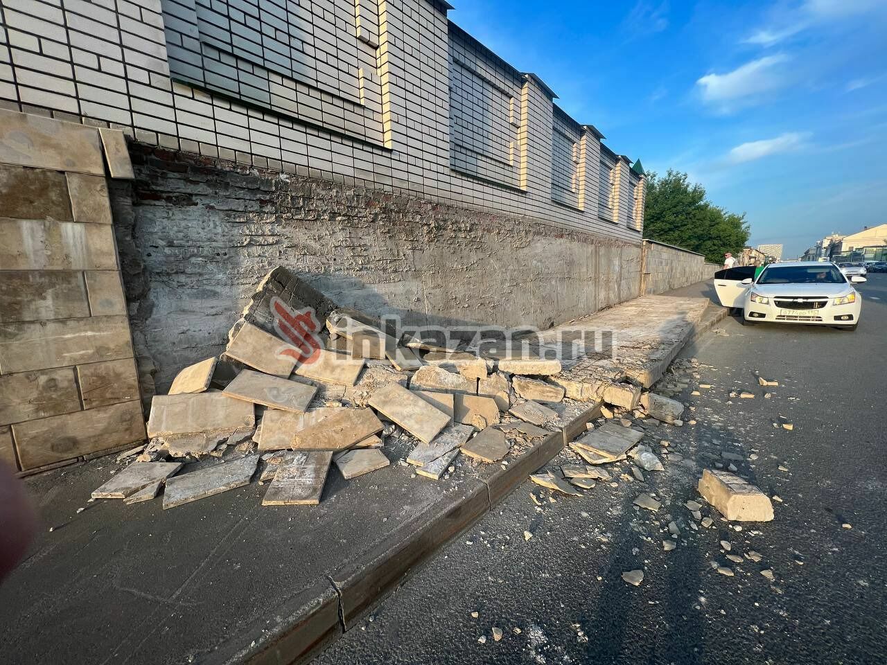 Фото: inkazan.ruОбновление : подписчики Telegram-канала Inkazan сообщили, что по состоянию на 19:34 проход к обрушившеся подпорной стенке огородили. Также на место приехала рабочая техника.