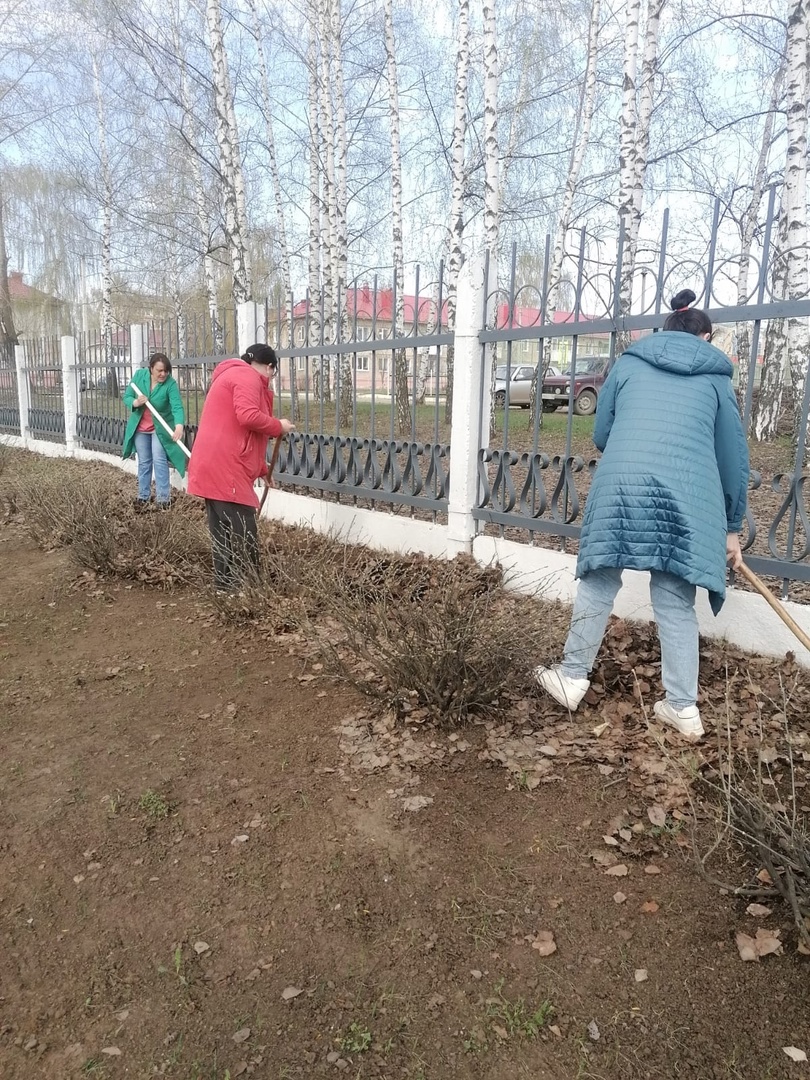 Вооружившись необходимым инвентарем участники субботника приводили в порядок отведенную территорию: собирали мусор, оставшейся после зимы, очищали территорию от сухих листьев и белили бордюры.