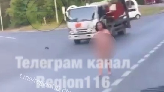 В Казани прямо на дороге заметили голую девушку, шедшую по разделительной полосе.