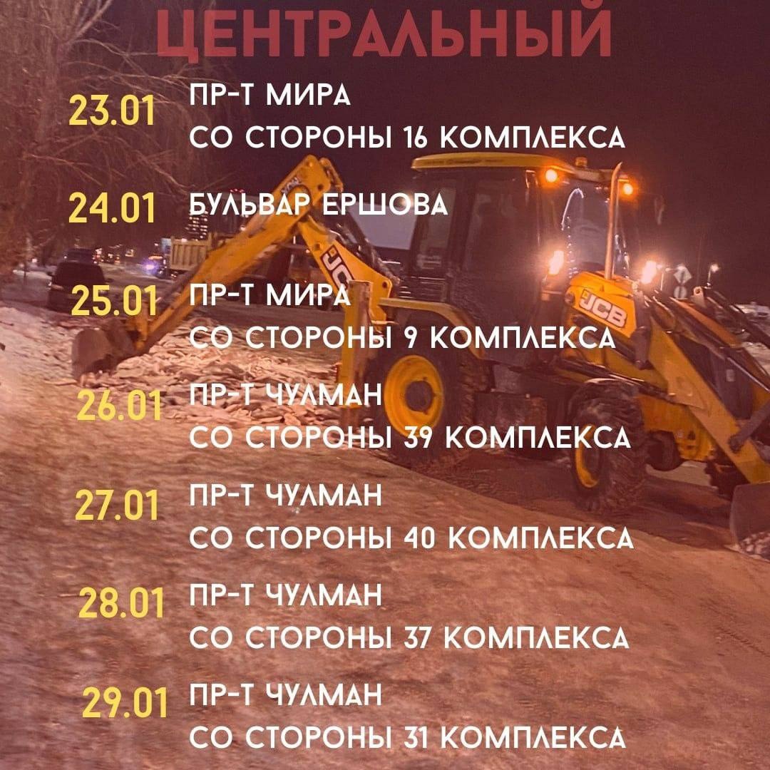 МУП «ПАД» опубликовало график чистки местных проездов на текущую неделю. Так, сегодня, 24 января, дорожники будут работать на бульварах Ершова, Бумажников и Цветочный. Завтра будут чистить бульвар Юных Ленинцев и местный проезд проспекта Мира со стороны 9-го комплекса.