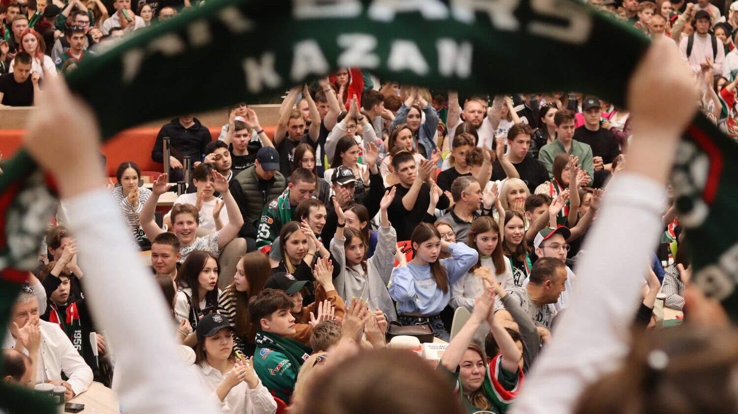 Старт седьмого матча в финале Кубка Гагарина был запланирован на 17:00. Пока в «Татнефть Арене» те, кто не смог урвать билет заранее, толпились в очереди в кассу, болельщики собрались в «Меге» как минимум за час до начала решающей игры. Еще на подходе к торговому центру можно было заметить семьи, переодетые в мерч казанской команды, детей, держащих в руках флаги Татарстана, и компании подростков в фирменных шарфах «Ак Барса».