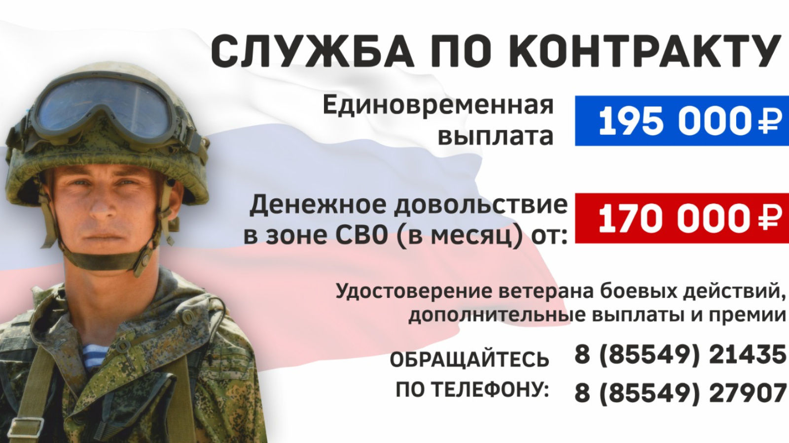 ЕДВ при заключении контракта от 1 года и более – 195 000 рублей