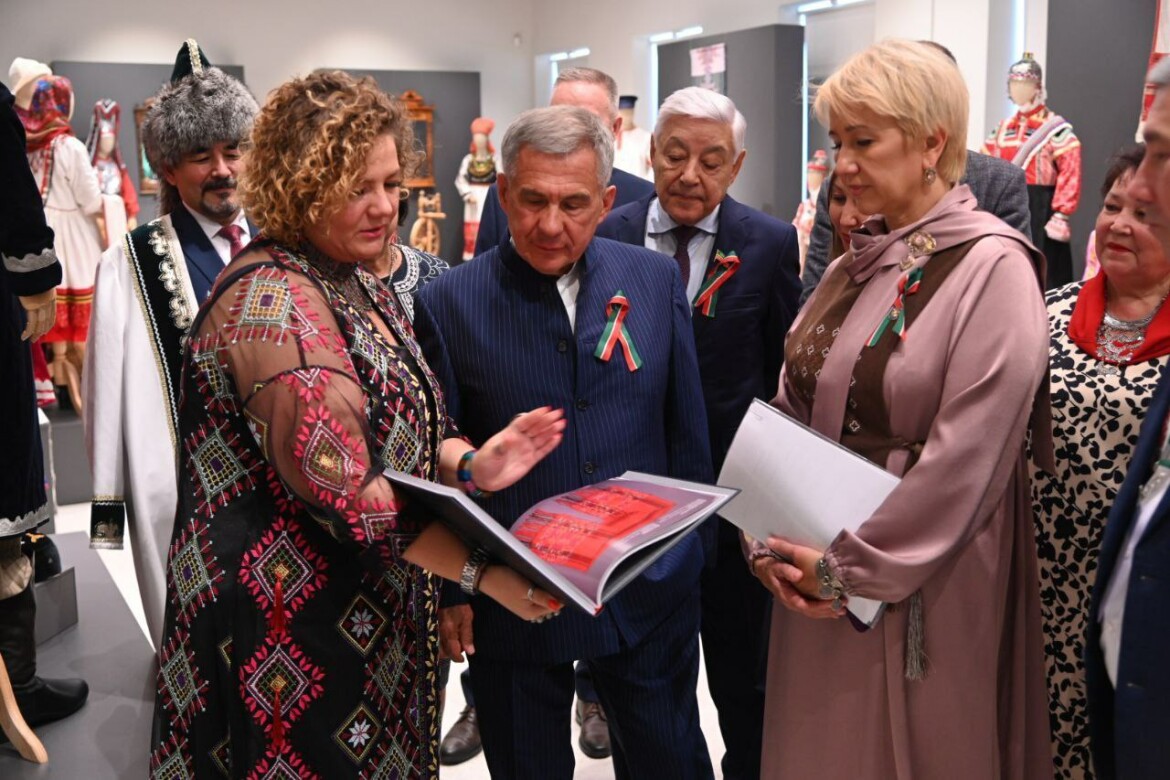 Раис Татарстана Рустам Минниханов посетил выставку воссозданной традиционной одежды «Казанское Поволжье: образы народной культуры».