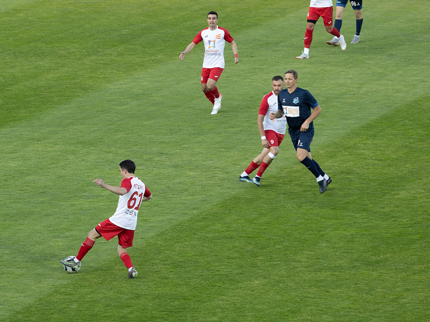 (Город Казань KZN.RU, 27 июня, Татьяна Марюхова). Сегодня на центральном стадионе в Казани прошел благотворительный матч между командами «Друзья Бурмистрова» и FIGHT NIGHTS. Посмотреть на игру и поддержать любимых спортсменов пришли около трех тысяч человек. В качестве зрителя событие посетил и Мэр столицы РТ Ильсур Метшин.Основное время матча завершилось со счетом 1:1. После чего прошла серия пенальти, по итогам которой со счетом 3:2 победу одержали FIGHT NIGHTS. Спортсмены отыграли два тайма по 45 минут, а в перерыве между ними провели автограф-сессию для юных любителей футбола. Участники игры расписались на открытках и вещах, которые передавали им ребята.