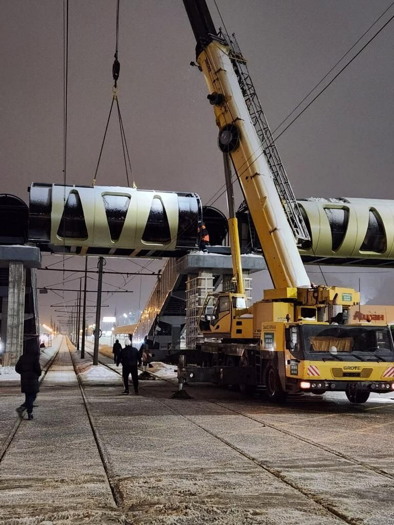 Части перехода перевозили отдельными секциями. «Выглядит футуристично, но главное – это функционально», - подчеркнули в Telegram-канале мэрии.