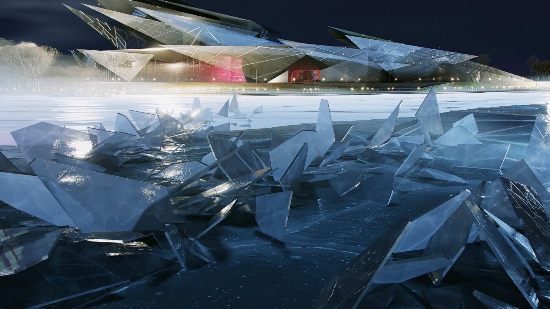 Напомним, что победителем в конкурсе на проект театра стал архитектурный консорциум «Ваухаус». Для татарского театра консорциум использовал в архитектуре отсылку на простую треугольную форму нынешнего театра Камала. Авторы проекта рассказывали, что геометрия нового театра навеяна редким природным явлением: «ледяными цветами» на озере Кабан. Стоимость театра оценивали в 7,8 млрд рублей.
