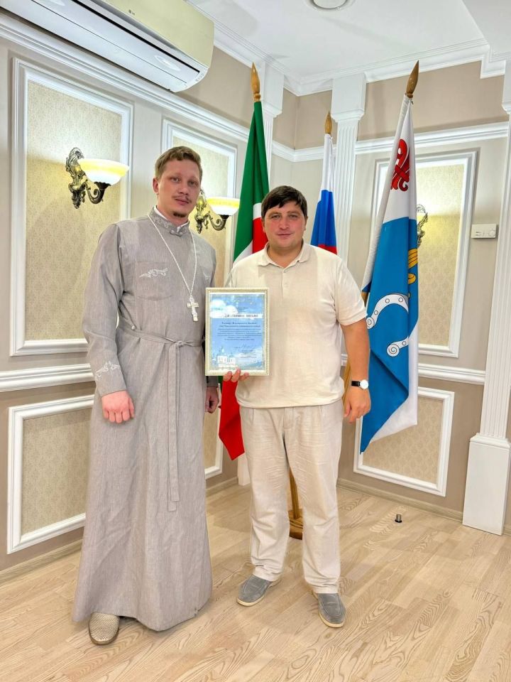 Отец Василий передал письмо от благочинного Елабужского и Менделеевского района иеромонаха Кирилла Забавнова.