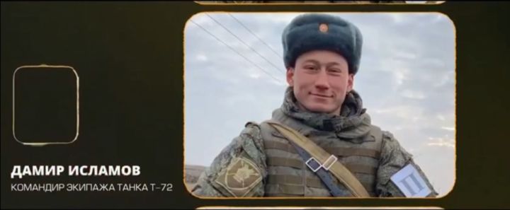 Экипаж танка под командованием командира взвода старшего лейтенанта Исламова Д.Н. при прорыве укрепрайона противника, действуя решительно и смело, уничтожил долговременную огневую позицию и до 10 человек живой силы противника. В ходе танковой дуэли с контратакующим противником экипаж точными выстрелами уничтожил 4 вражеских танка, но прямым попаданием сам был подбит.