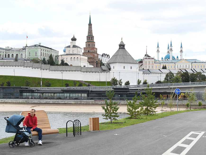 (Город Казань KZN.RU, 30 августа). В столице РТ благоустроили территорию вдоль Кремлевской транспортной дамбы. На участке от Центра семьи «Казан» до Кремлевской набережной обустроили велопешеходный маршрут, высадили деревья, установили скамейки. Сегодня результаты работ оценили Раис РТ Рустам Минниханов и Мэр Казани Ильсур Метшин.Благоустроенная часть набережной связала исторический центр города, Кремль и набережную с новым микрорайоном, где расположены Центр семьи, Фестивальный бульвар и сквер «Молодежный». Как сообщили Раису Татарстана, на этой территории планируется проводить велозаезды, пробежки и спортивные марафоны.