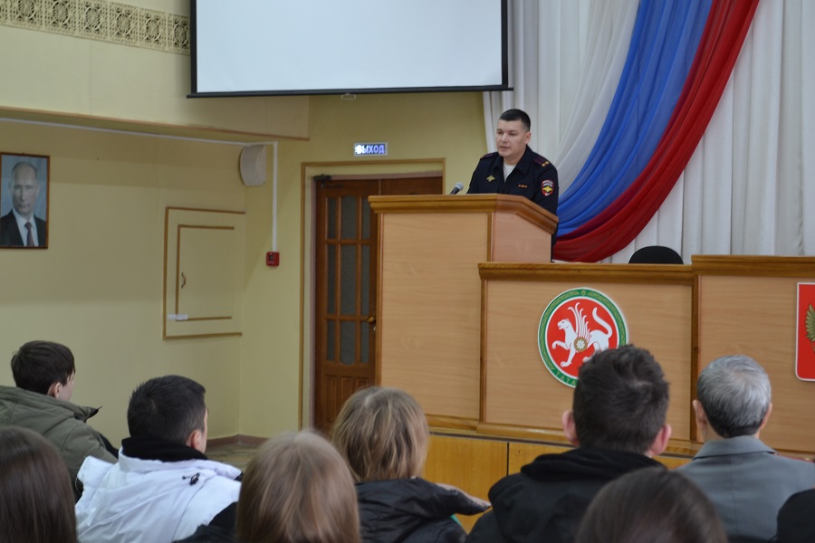 В завершении мероприятия перед ребятами выступил заместитель начальника отдела (по работе с личным составом) подполковник полиции Алмаз Салахов, который разъяснил ребятам какое образование необходимо иметь будущему сотруднику, чтобы служить на той или иной должности. Более подробно остановился на вопросах трудоустройства, в частности разъяснил требования, предъявляемые к кандидатам на службу в ОВД и рассказал о социальных гарантиях сотрудников.