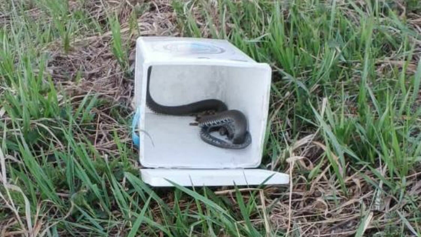 Специалисты поймали рептилию в специальный контейнер и забрали с собой. Позже они выпустили ужа в местное озеро недалеко от города.