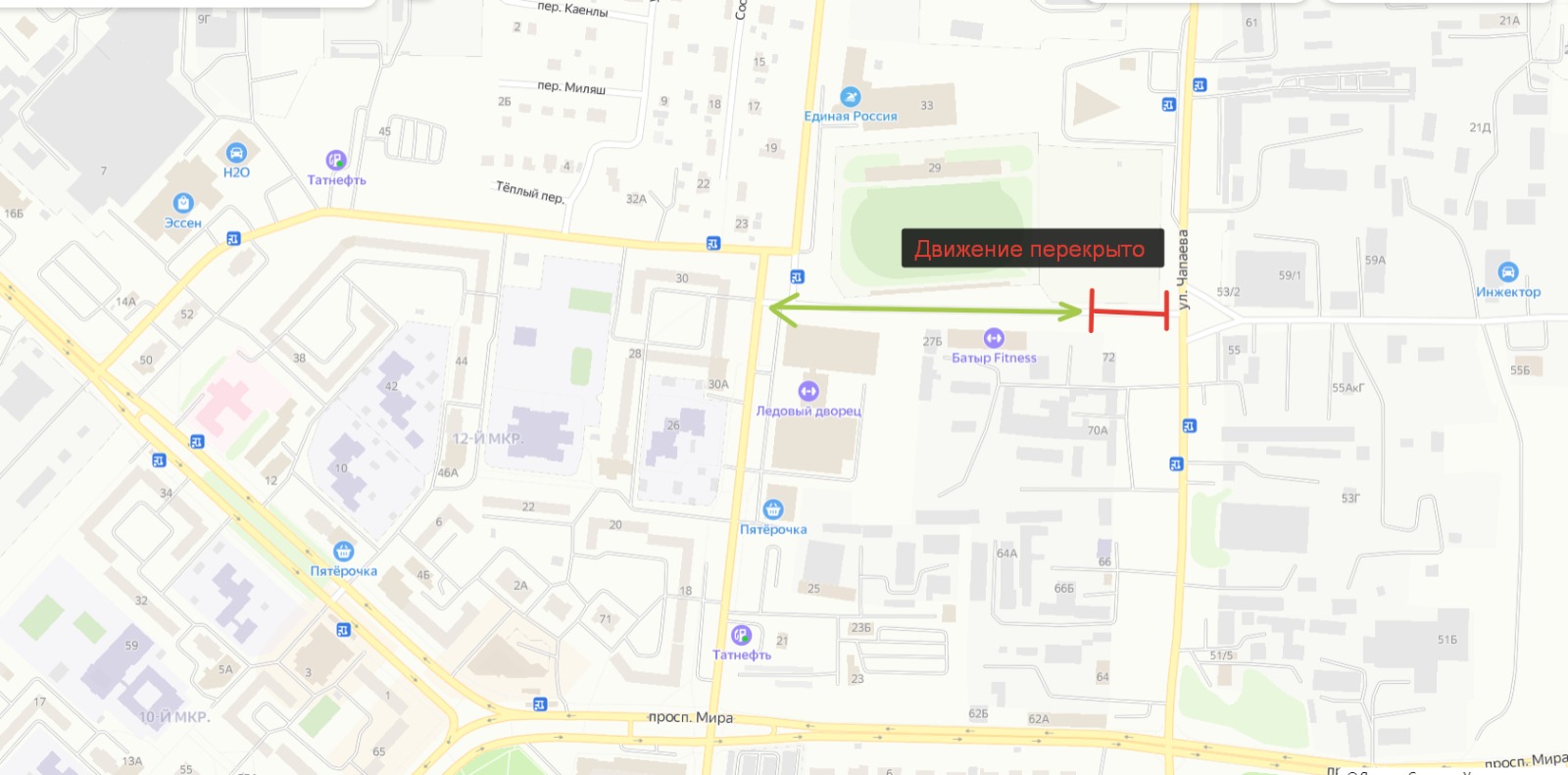 С сегодняшнего дня будет перекрыт выезд от фитнес-центра “Батыр” на ул. Чапаева. По информации отдела инфраструктурного развития, в настоящее время эта дорога представляет собой аварийный участок, дорожное полотно находится в неудовлетворительном состоянии. В связи с этим, комиссией по безопасности дорожного движения, принято решение о закрытии данного выезда. Дорога будет закрыта до завершения ремонтных работ.
