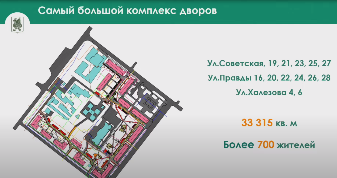 «Самым большим объектом этого года станет комплекс дворов по улицам – Советская, Халезова и Правды. Общая площадь более 33,3 тыс. кв. метров, там проживает более 700 человек», – сообщил он.