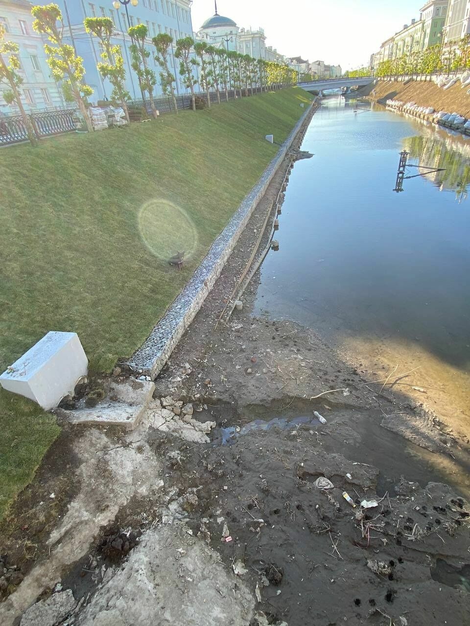 Фото: Telegram-канал мэрии КазаниВ мэрии Казани заявили, что сейчас районная администрация проводит работы по ремонту протоки Булака, их планируют завершить к концу следующей недели. Там же отметили, что на ливневках на улице Право-Булачная есть дождеприемные решетки, которые препятствуют попаданию мусора в сети.