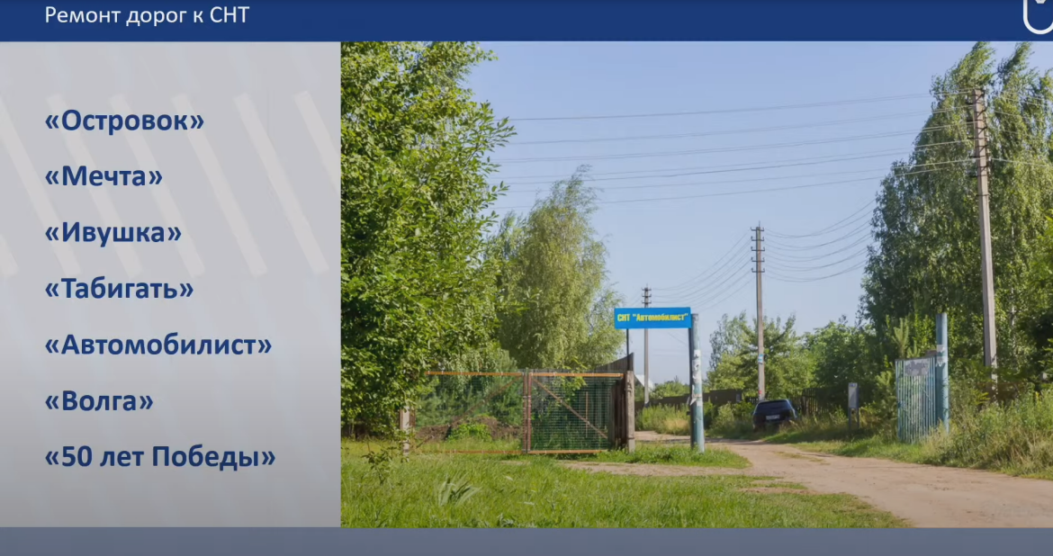 Исходя из представленной Салиховым информации, ремонт дорог проведут к СНТ: «Островок», «Мечта», «Ивушка», «Табигать», «Автомобилист», «Волга» и «50 лет Победы».