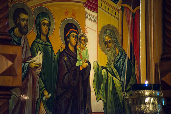 Праведный Симеон берёт Иисуса на руки, и возглашает: «Ныне отпускаешь раба Твоего, Владыко, по слову Твоему, с миром, ибо видели очи мои спасение Твое, которое Ты уготовал пред лицом всех народов, свет к просвещению язычников и славу народа Твоего Израиля». Эти благодарственные слова, кстати, Церковь бережно сохранила, и теперь мы молимся ими, например, после Причастия, также они звучат во время Крещения младенцев мужского пола, да и все мы слышим их на каждой вечерней службе…