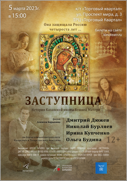 По благословению митрополита Казанского и Татарстанского Кирилла три фильма из документально-художественной трилогии, посвящённой Казанской иконе Богородицы, будут показаны 5, 12 и 19 марта в 15.00 в кинотеатре «Синема Парк»,