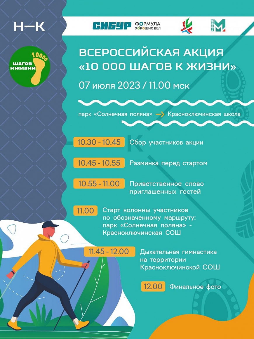 Жителей Нижнекамска приглашают присоединиться к участию во Всероссийской акции «10 000 шагов к жизни», которая пройдёт в пятницу, 7 июля.