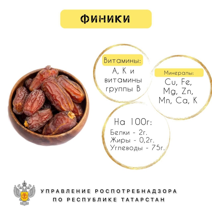 Финики ценят за то, что они отлично насыщают и дают силу. Плоды помогают бороться с вирусными инфекциями, а также успокаивают кашель и выводят мокроту.