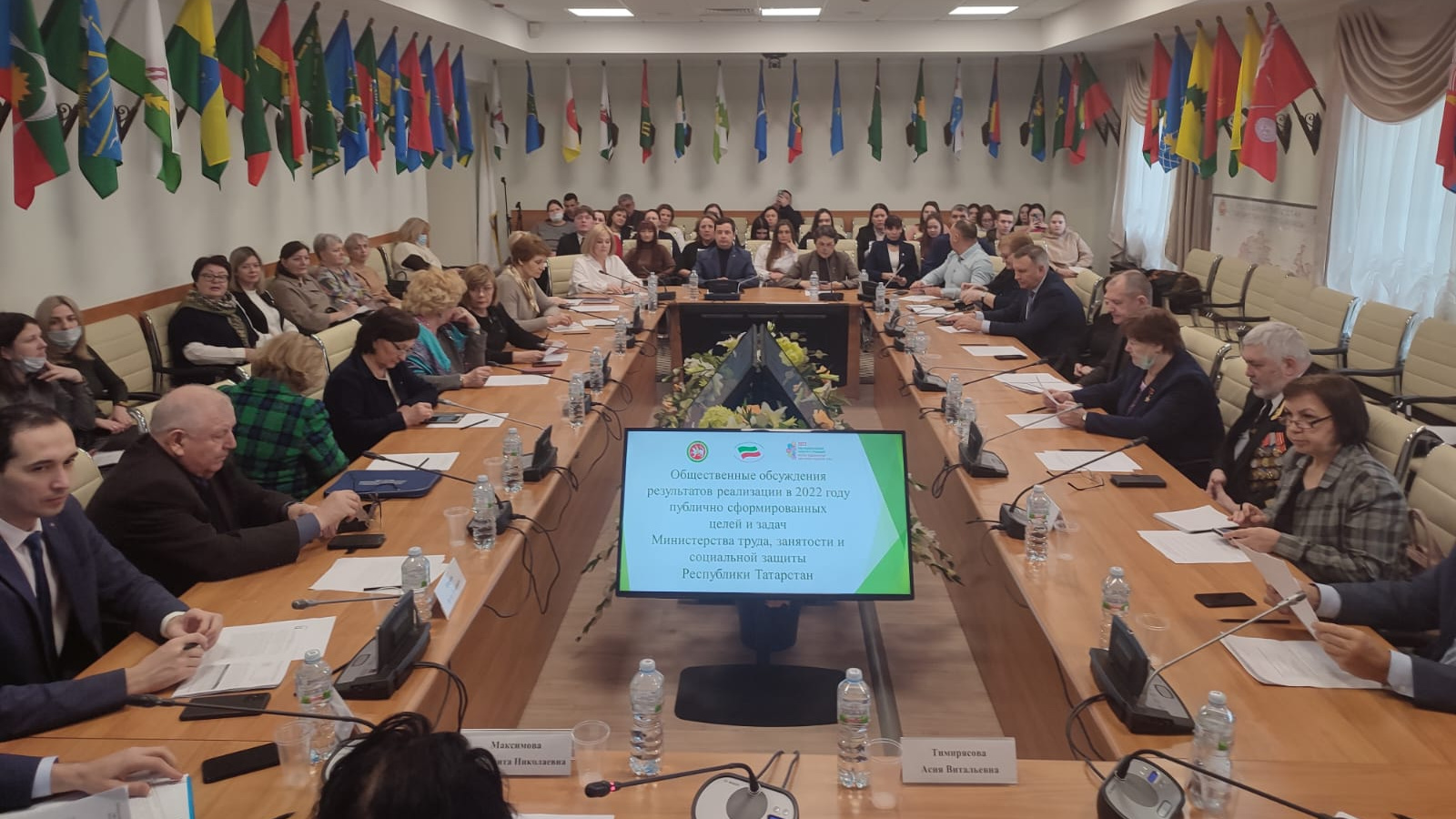 Сегодня состоялись общественные обсуждения результатов реализации публично сформированных целей и задач Министерства труда, занятости и социальной защиты Республики Татарстан по итогам 2022 года. Такого рода совместные мероприятия министерств республики и Общественной палаты РТ проводится впервые.