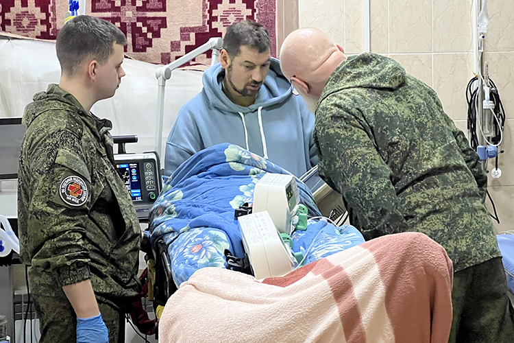Часть пациентов провели в поле с ранением всю ночь, кто-то «словил» осколок совсем недавно. Преимущество госпиталя в близком расположении к фронту — бойцов можно довезти до медиков за час. Одним из первых поступили уроженцы ЛНР, ныне бойцы МО РФ. Один из них — 21-летний парень в тяжелом состоянии. Перебиты ноги, замерз. В 18 лет он заключил контракт с народной милицией, так и остался на СВО. У него тяжелая травма ноги, повреждены важные сосуды и артерии. Парню грозила ампутация, причем с бедра. «Сосуды разорваны, либо восстанавливать, либо отрезать» , — совещались медики.