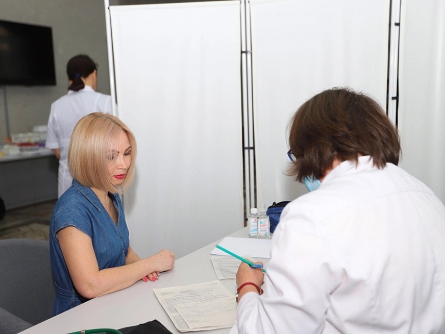 С 7 утра пациентам проводились все обследования, которые можно сделать удалённо, не в стенах поликлиники: анкетирование, измерение роста, веса и давления, ЭКГ. Также медицинские работники проверяли внутриглазное давление, пациенты могли сдать кровь и пройти осмотр терапевта.