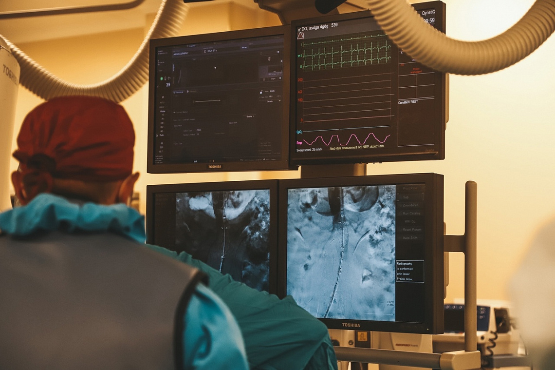 У жителя Казани две недели назад прихватило сердце, когда он забирал дочку из школы. Заехал в ближайшую клинику - амбулаторию в Песчаных Ковалях. Там оказали первую помощь и на машине скорой помощи увезли в РКБ. В приемном покое у казанца пропало давление и ритм, потребовалась реанимация. Реаниматолог Рафаэль Асхатович Валиахметов быстро оказал всю реанимационную помощь и вместе с медсестрами завезли его в операционную. Мужчину пришлось реанимировать 16 раз, в том числе и во время операции, каждый раз используя дефибриллятор. Рентгенхирургу Дмитрию Сергеевичу Кочневу удалось поставить два стента, а реаниматологам и кардиологам стабилизировать состояние пациента за неделю.