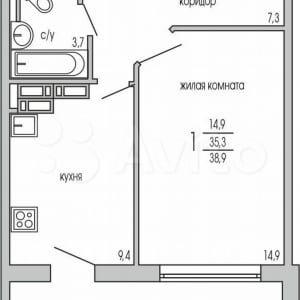 - Общая площадь: 38.9 м²