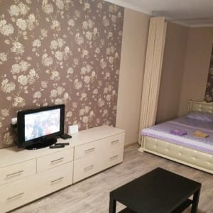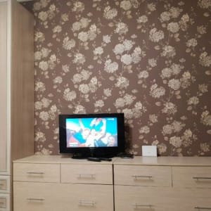В квартире имеется: диван, двухспальная кровать, журнальный столик, шкаф в прихожей, ЖК-ТВ, Wi-Fi, стиральная машина, микроволновая печь, утюг, гладильная доска, посуда.