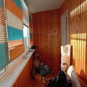 Остается все что на фото: кухонный гарнитур, микроволновка, стол, табуретки, большой встроенный шкаф-купе с многочисленными полками и зеркальными дверцами, жалюзи, стир.машина, диван и комод, люстры, шторы и тюль, ковролин, кондиционер.